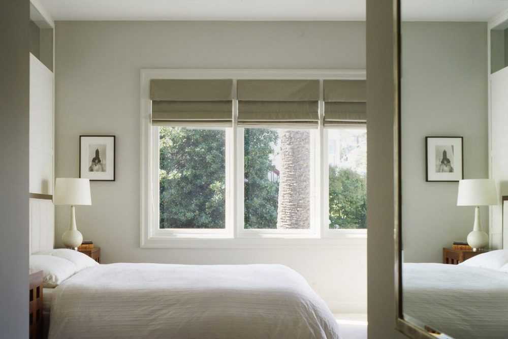 Здесь будут гармонично смотреться и римские шторы. Они не утяжеляют оконный проем, а в поднятом виде складки выглядят элегантно. Их можно использовать вместе с боковыми портьерами или дополнить балдахином.