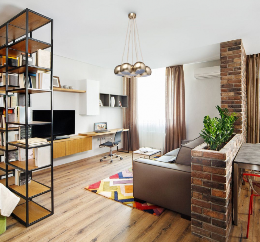 - Превращение однокомнатной квартиры в полноценное помещение с отдельной стальней, гостиной, кухней и рабочим местом при помощи грамотного добавления новых гипсокартонных перегородок.