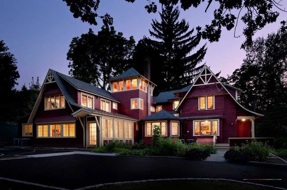 Крафтсмен. Дом в этом стиле обладает колонами и сложной скатной крышей, витражами в окнах и дверях, а также большим каменным дымоходом.