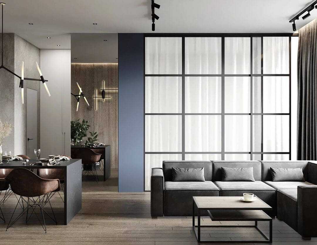 Семейных фотографий, книг, мелких безделушек быть не должно. Бытовая техника – максимально скрыта в шкафах или за перегородками.
