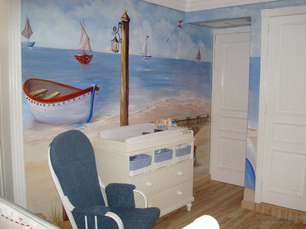 В интерьере детской роспись должна быть понятной для ребенка. Это может быть сюжет сказки, герой мультфильма. Лучше всего, чтобы фреска была напротив кровати, чтобы малыш рассматривал ее перед сном.