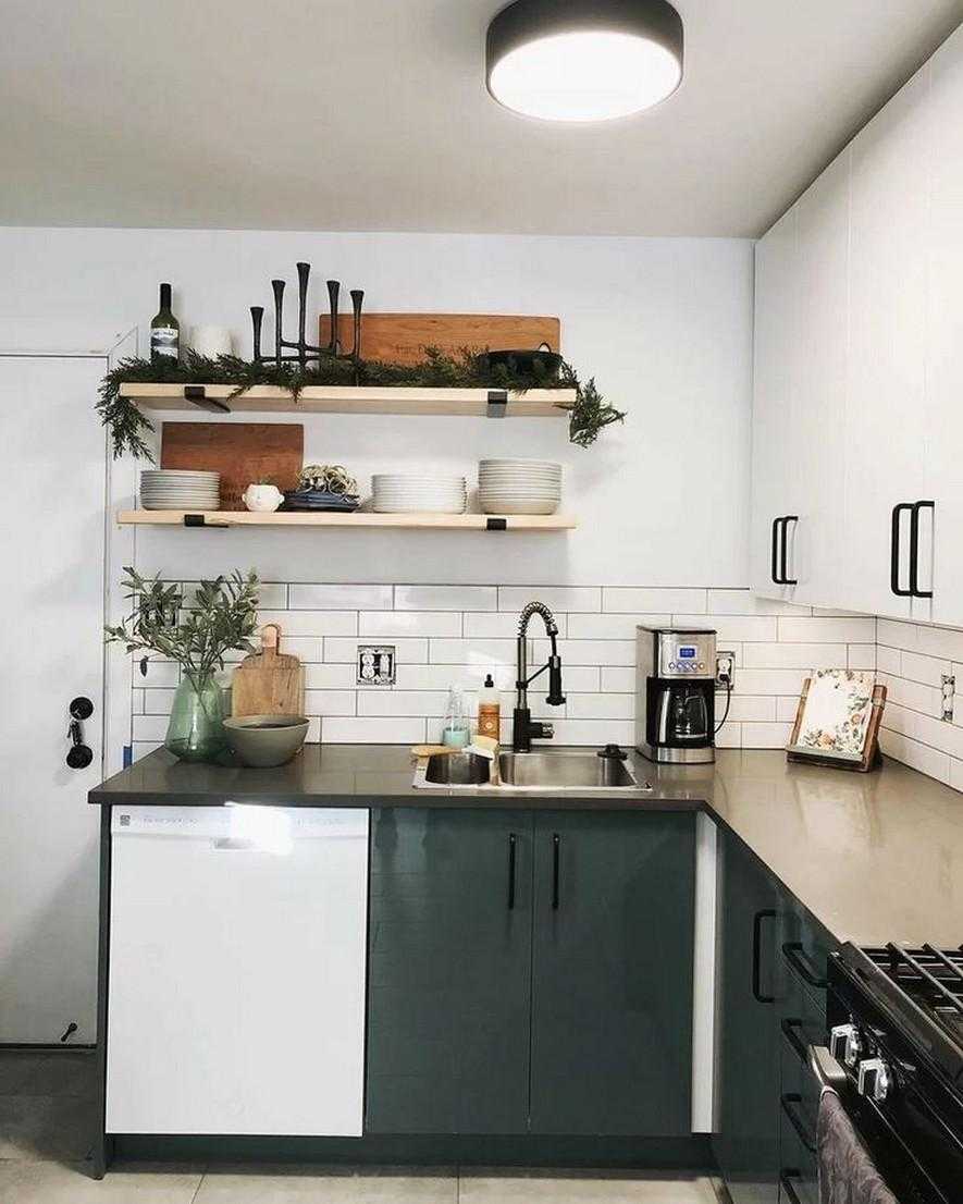 Также рекомендуем воздержаться от установки навесных шкафов. В 2018 году вновь обретут популярность интересные стеклянные фасады, а также открытые полки. Все это смотрится очень оригинально, но в то же время лаконично. Поэтому идеально подходит для кухни небольшого размера.