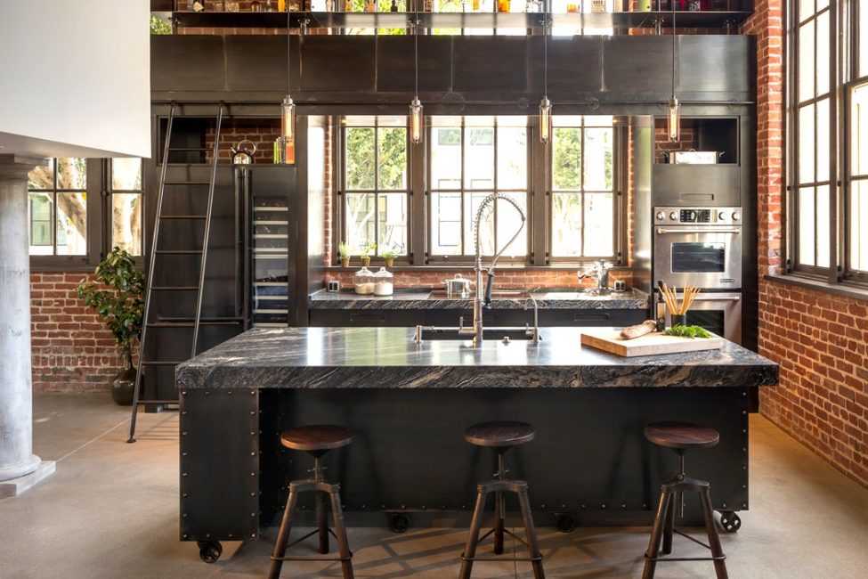 Установка освещения в кухне, выполненной в индустриальном стиле