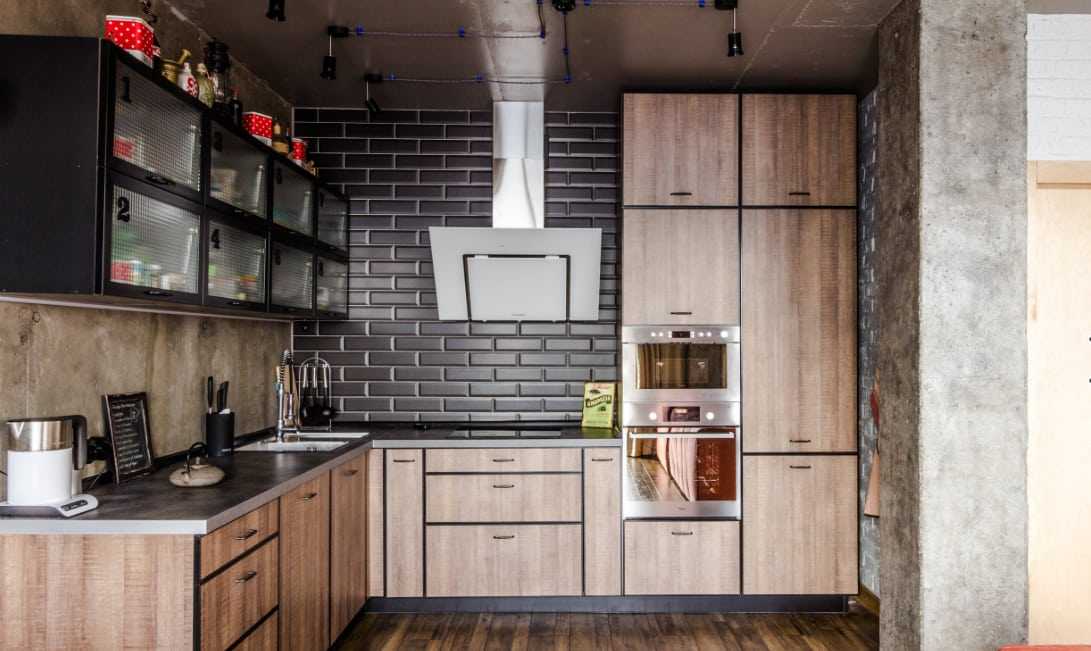 Если площадь кухни в квартире маленькая, элементы стиля лофт придадут ему черты богемного шика и легкой небрежности.