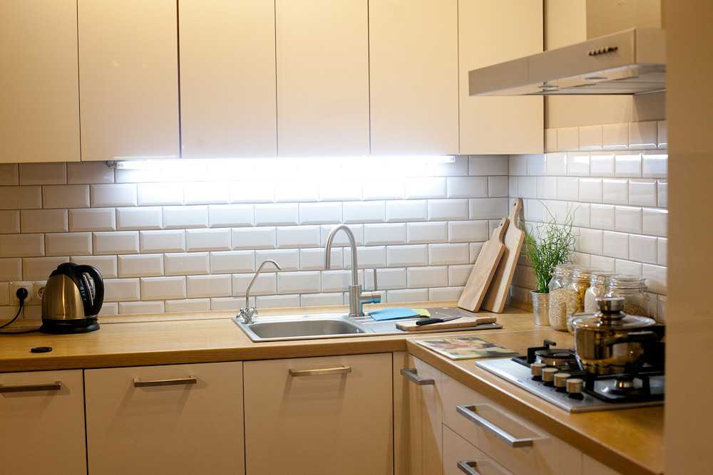 - Дополнительное освещение (фартука, например) должно быть на входе в кухню на одном двухклавишном выключателе с основным. Не отдельно как делает большинство. В идеале, выключатель должен удобно нажиматься коленом (признавайтесь, тоже же любите поесть вне кухни и часто уходите с занятыми руками?).