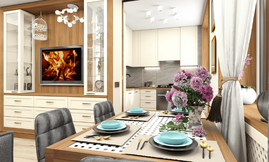 Начиная с 2021 года в особенном тренде модульная мебель. Комбинации из стола и табуретов, рациональное использование пространства над и под мойкой, навесные шкафы, не достающие до пола, но более объемные, чем традиционные кухонные шкафчики. Следует исключить из планировки мягкие уголки, помпезные люстры, диваны – все это уже неактуально. Востребованными остаются подсветка в каждом ограниченном пространстве, декоративные лампы из натурального сырья, стеклянные шкафы верхнего уровня, угловые шкафы в небольших кухнях, скрывающие торцы и экономящие пространство.