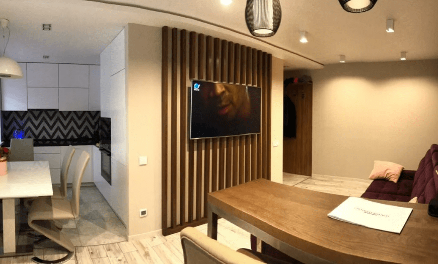- создаёт дружественное пространство. Тесные проходы становятся комфортнее: вы больше не рискуете случайно задеть мебель локтем;