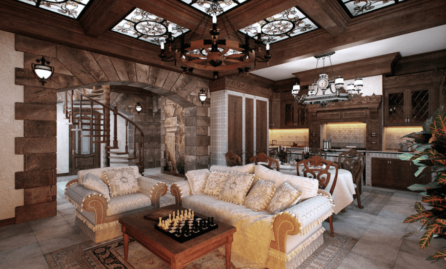 Деревенский дизайн, в котором преобладают светлые и теплые оттенки, классическая мебель, камин и иные интерьерные элементы, создающие вместе уютную домашнюю атмосферу.