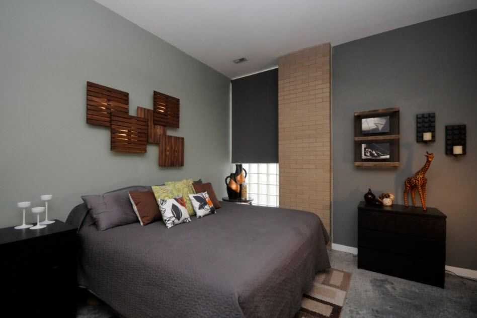 Пожалуй, нет стиля, который нельзя было бы воссоздать в сером цвете. Спальня в стиле лофт вполне органично смотрится в сером антураже