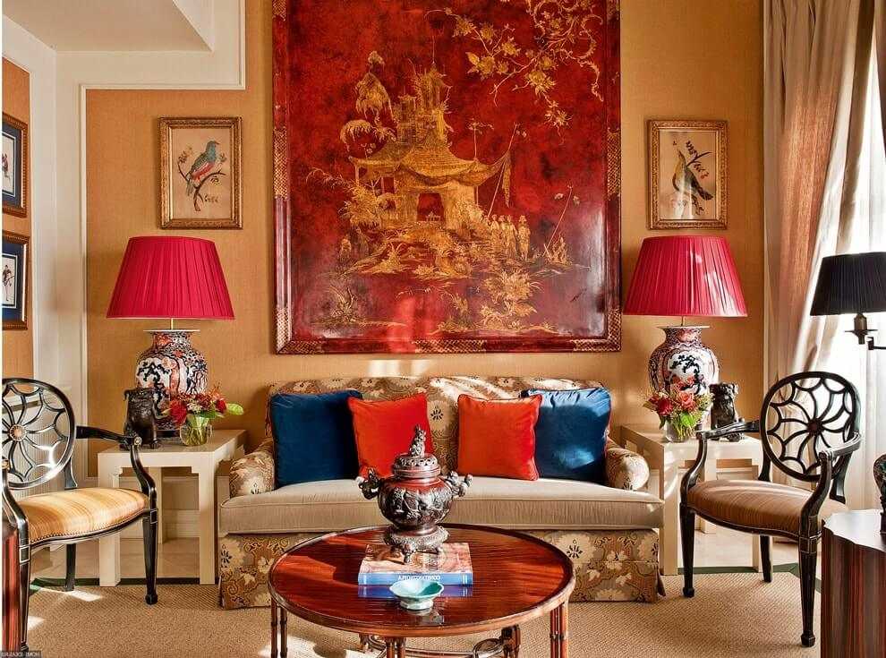 Интерьер в колониальном стиле в квартире или доме до краев наполнен этническими сюжетами. Картины в данном случае являются выражением всех тех новых черт, привносимых страной, в которой оказались колони переселенцев. В соответствии с этим различаются мотивы и сюжеты изображений