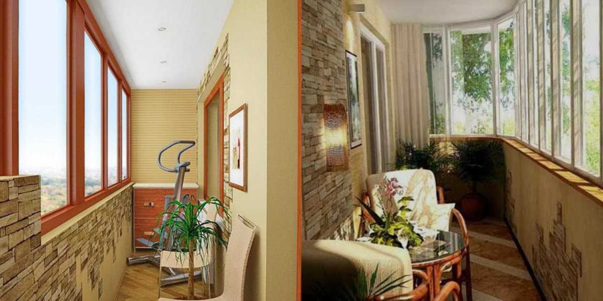 Второй по популярности материал — декоративный камень или клинкерная плитка под кирпич. Отделка балконов внутри этими материалами возможна и при холодном, и при теплом остеклении, а также вообще без него. Материал долговечен, легок в уходе, морозостоек, не разрушается под действием ультрафиолета. Так что неплохой выбор.