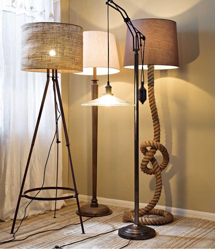 - напольные светильники в деревенском стиле, которые создают впечатление художественной ковки и рустики;