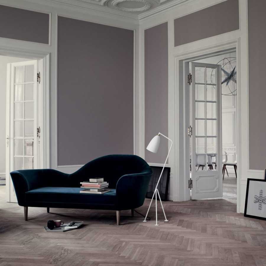 Современные стили отлично дополняются высокими торшерами на металлической изогнутой ножке. Цветовое оформление выбирается из спокойных оттенков серого, белого, черного цветов, отлично подчеркивающих минимализм отделки.