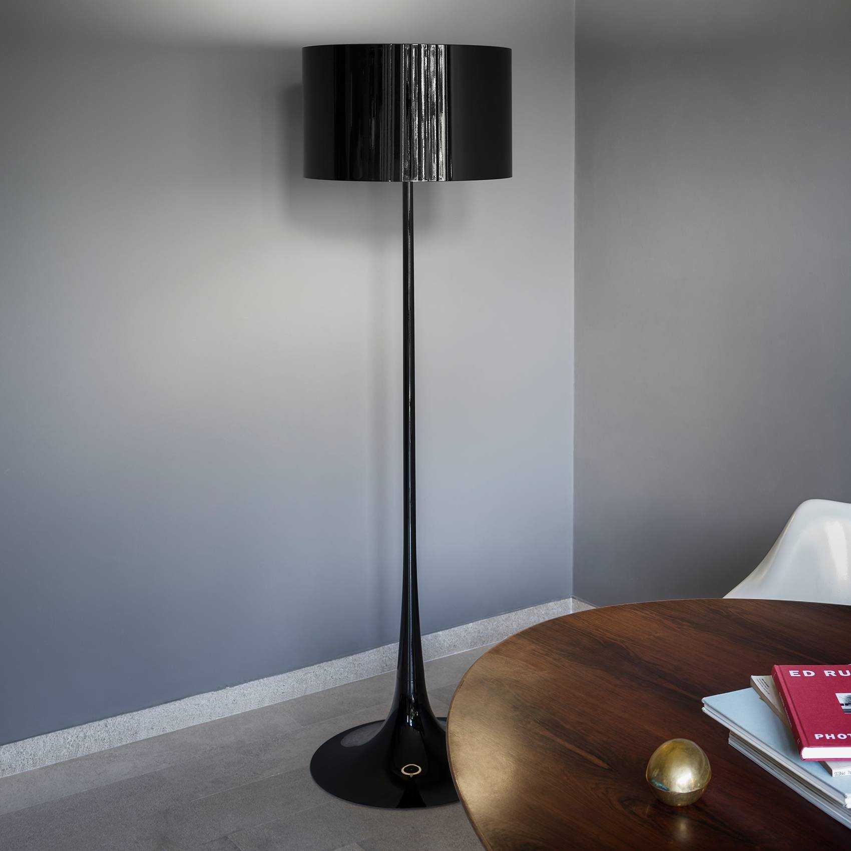 Необычным решением станет напольный точечный светильник. Удивительно, но за несколько лет точечные светильники из профессионального использования превратились в предмет мебели для дома. Такой прибор больше подходит для чтения, так как при такой форме свет не рассеивается, а направлен строго в определенное место.