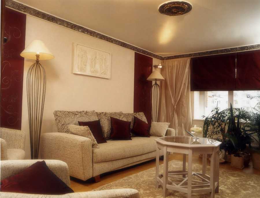 И на фоне лепки, рисунка, и на фоне обоев 3д будут хорошо смотреться этот предмет интерьера. Торшер занимает место, пусть и немного – в этом минус. С другой стороны, его легко подвинуть, переставить.