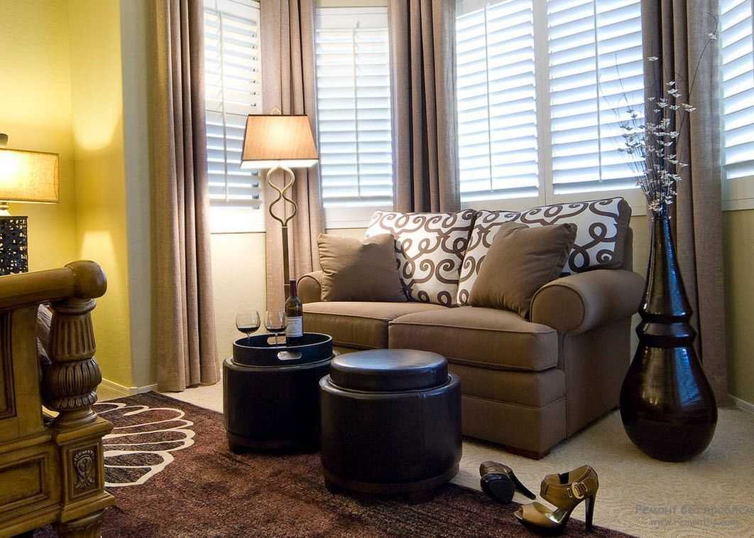 Модель торшера должна соответствовать общей концепции ремонта. Будет странно смотреться строгий металлический каркас и крупный скупой абажур в комнате с плюшевым ковром, диваном в рюшах и цветочными шторами. В этот интерьер подойдет желтый или бежевый абажур из текстиля, дерева или пластмассы.
