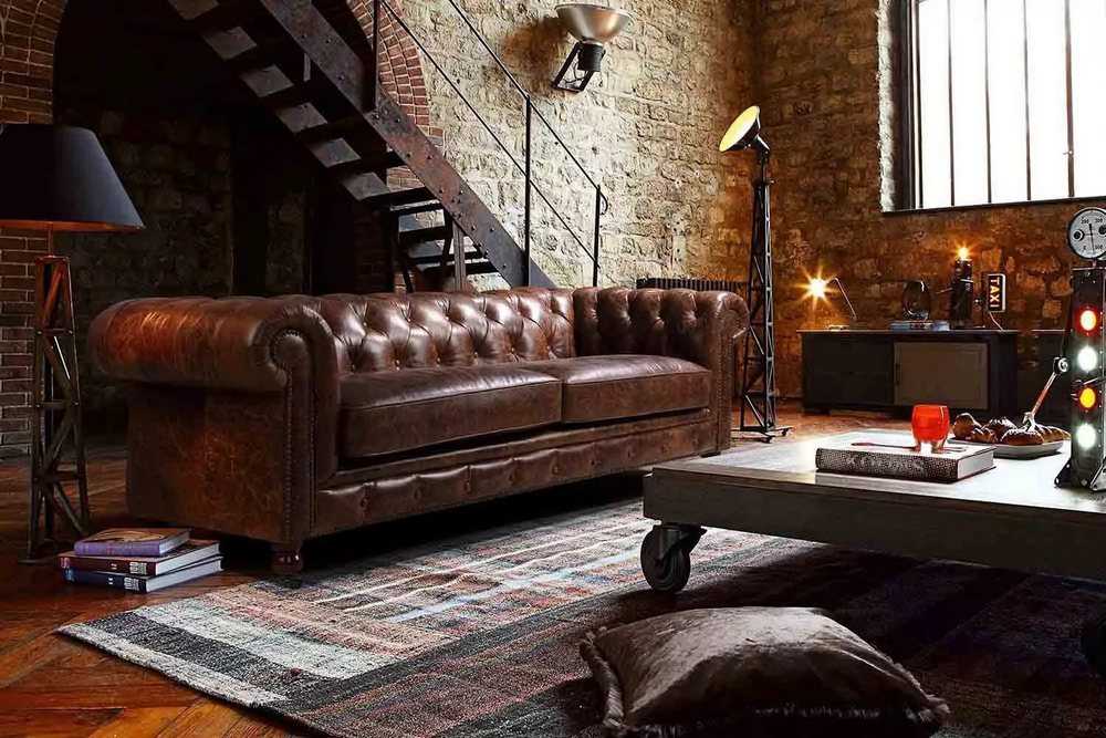 Кожаный диван Честер идеально сочетается с металлическими аксессуарами, эклектичными и, возможно, слегка индустриальными.