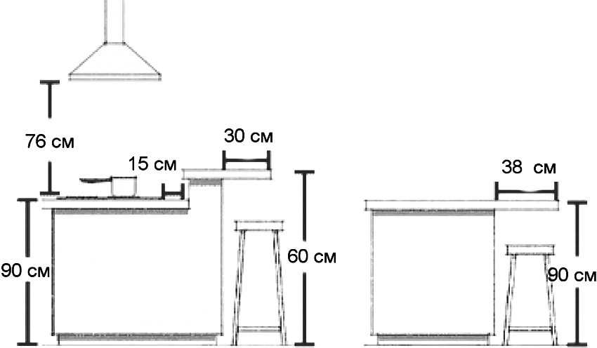 К примеру, иногда возникает необходимость учесть еще и рост хозяев, когда рассчитывается высота барной стойки. Стандарт может оказаться очень низким для высоких людей. Либо, напротив, «заоблачным», если хозяева кухни невысокого роста.