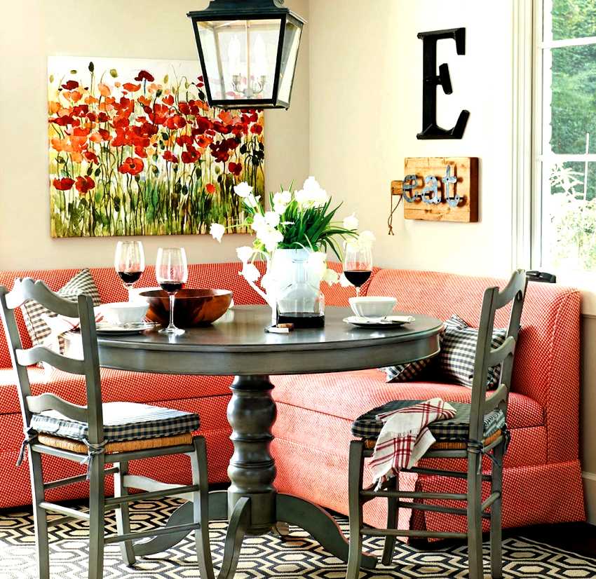 - хорошее решение получается при установке углового дивана. На одного человека можно посадить больше. Такие наборы на кухни недорого можно купить практически в любом мебельном салоне;