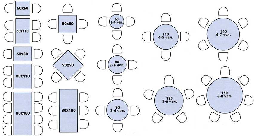 Стандартные размеры круглых, квадратных и прямоугольных столов