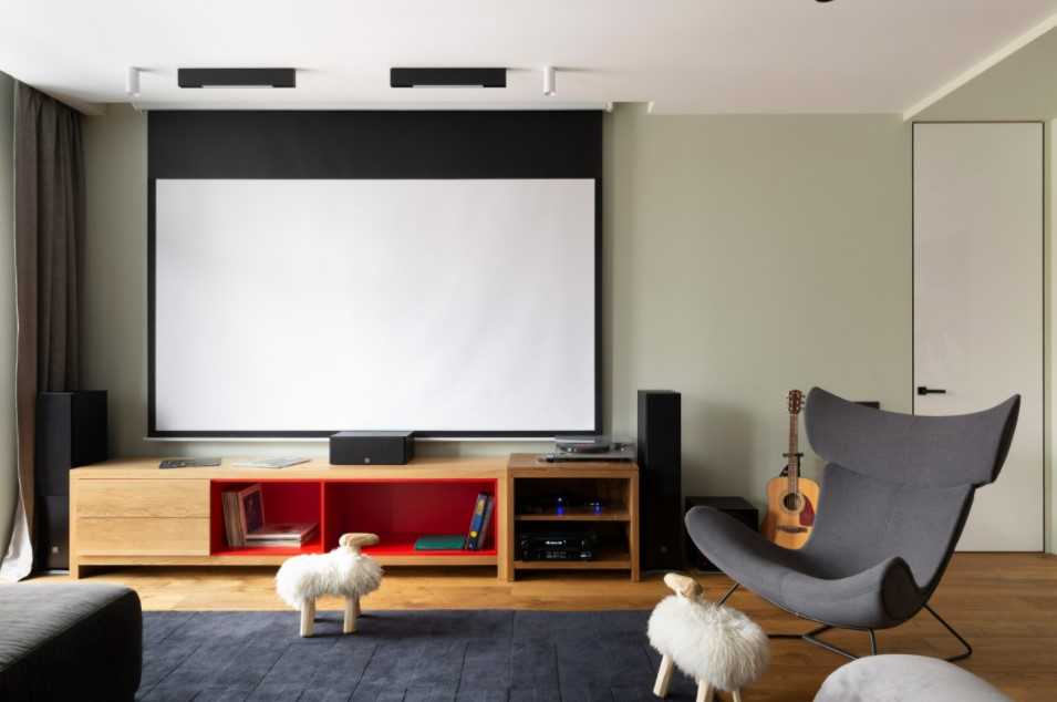 Если в доме маленькие дети, в пространство гостиной отлично впишутся предметы мебели выполненные из искусственной кожи, которая проходит специальную обработку.