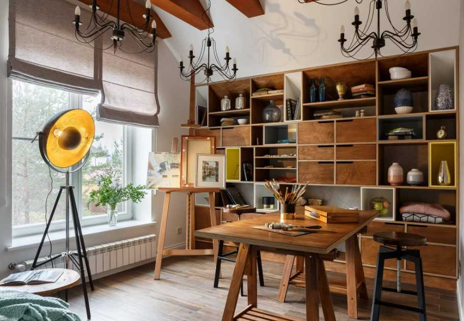 - размер помещения – чем меньше пространство, тем компактнее должна быть мебель, в небольшие комнаты подойдут узкие стеллажи, которые можно разместить у стены или по центру, а также навесные модели;