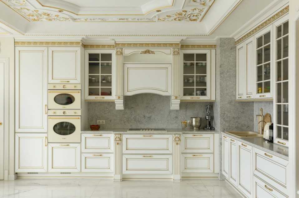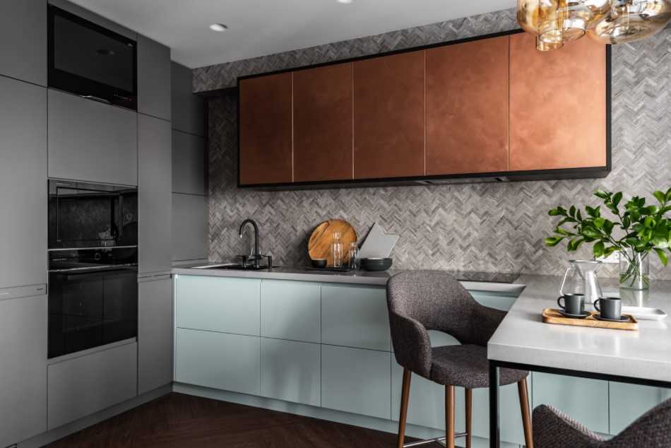 Внутренние элементы позволяют сделать кухню удобной и скрыть содержимое. За фасадами можно использовать: