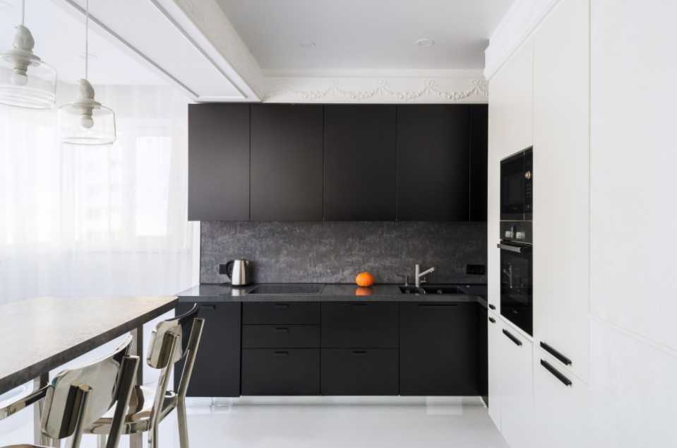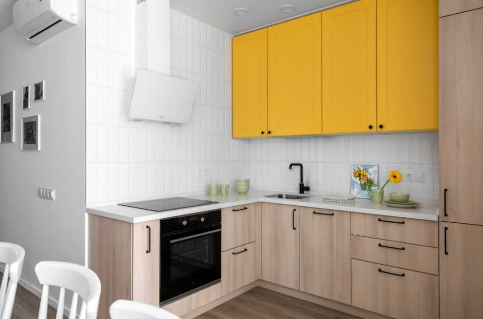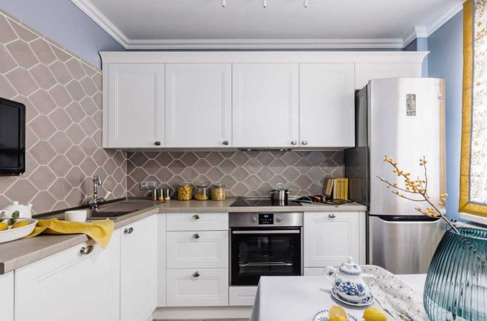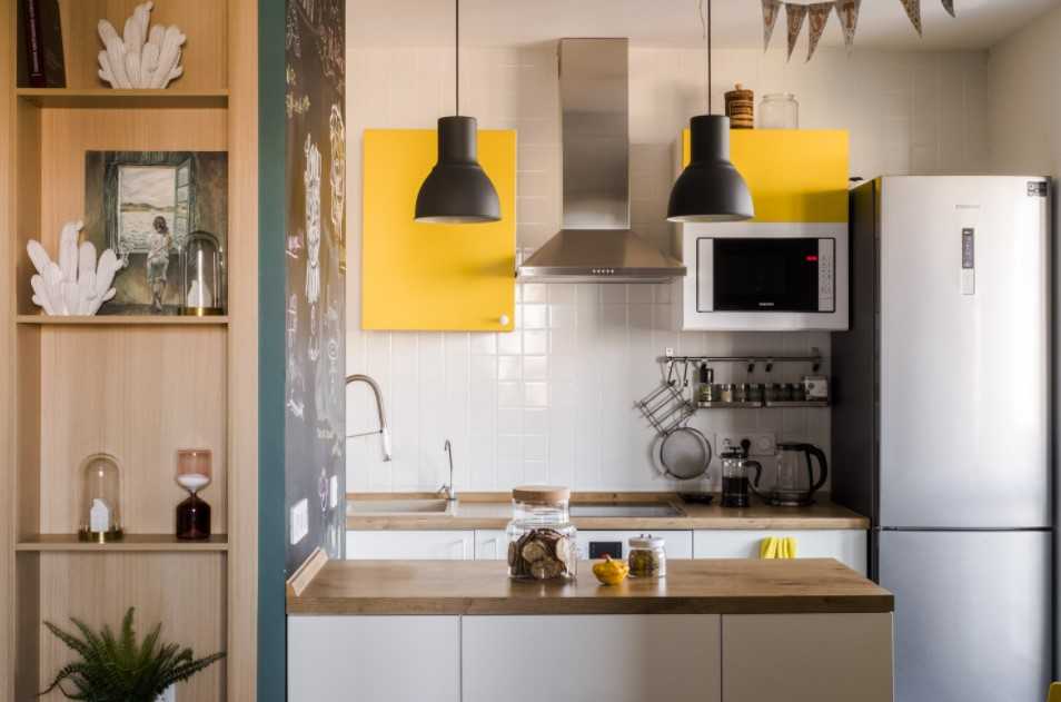 “ИКЕА” предлагает несколько вариантов фасадов в белом исполнении: “Будбин” с филенками и стеклянными вставками на верхних фасадах, минималистичный “Овербу”, “Хитарп” с вертикальными полосками. Такие кухни уже несколько лет не выходят из моды. Если со временем лаконичный дизайн надоест, можно добавить несколько ярких акцентов.