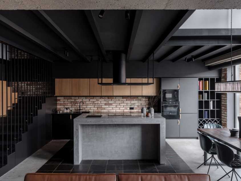 Промышленный вид такого гарнитура усилит индустриальный стиль всей кухни или добавит неожиданный поворот в устоявшийся дизайн.