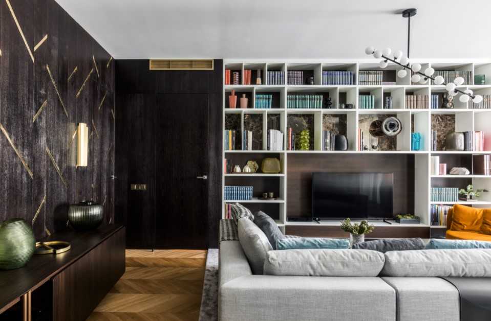 Стеллажи КАЛЛАКС в интерьере гостиной