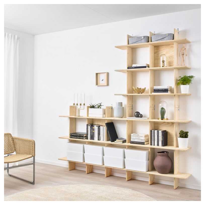В основном эта коллекция мебели состоит из одних стеллажей, которые сделаны из необработанного дерева. По желанию мебель Ивар можно покрыть лаком или специальным воском. Чаще всего используется в гостиных стилях кантри.