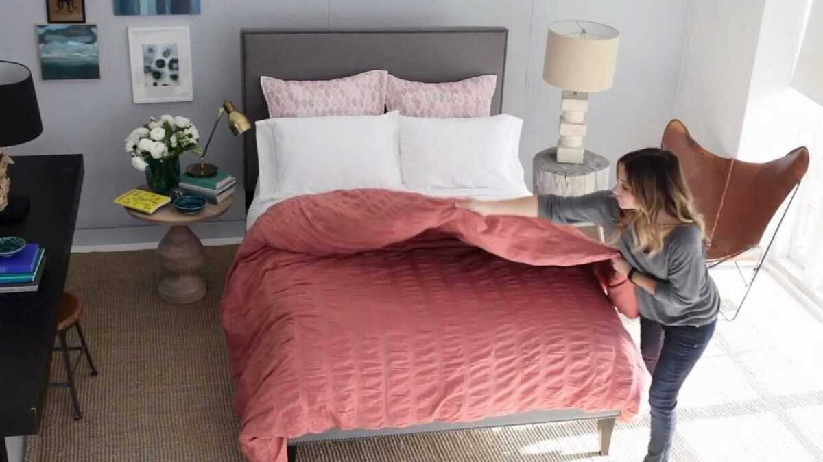 Есть как минимум два способа, благодаря которым есть возможность быстро застелить постель, чтобы она выглядела прибрано и аккуратно. Ниже представлена пошаговая инструкция, как в спальне быстро застелить постель: