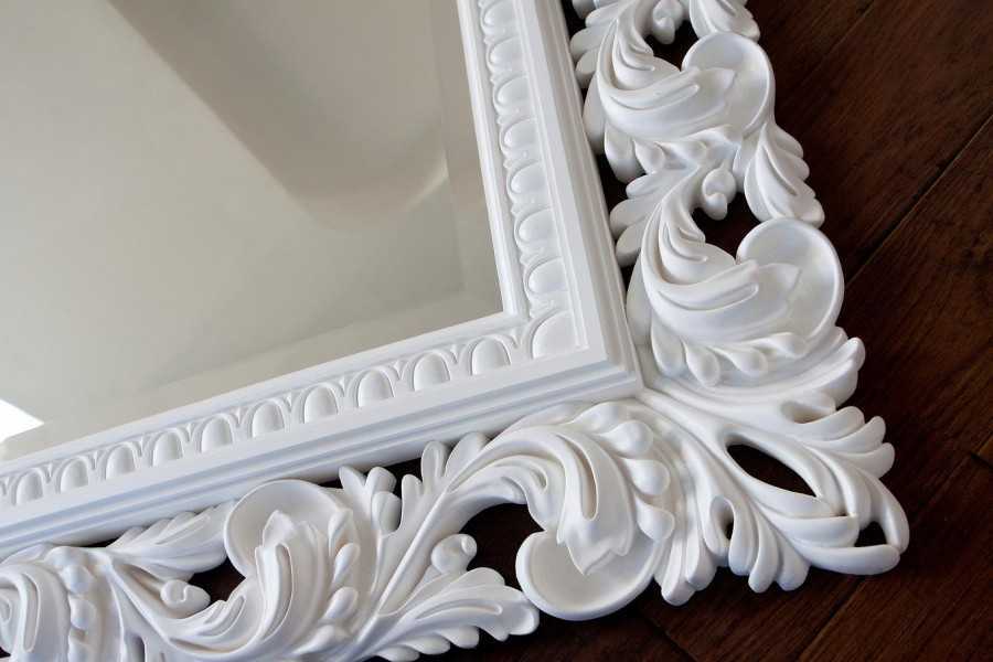 Перед тем как закрепить крупное зеркало, лучше украсить его богатой роскошной оправой, с необыкновенным замысловатым узором.