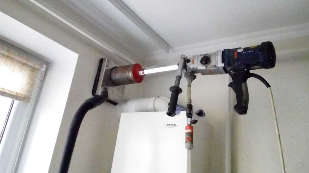 Сквозные отверстия в опорных стенах выполняют с помощью перфоратора или ударной дрели. Можно использовать и бытовую дрель при условии, что она имеет функцию ударного сверления и мощность 600 Вт и выше.