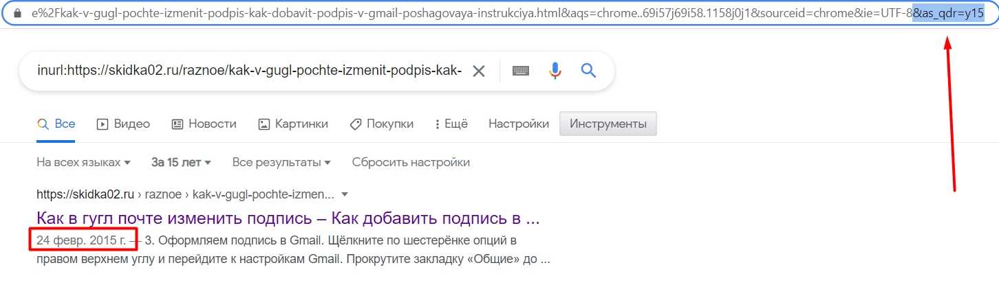 Для этого в поле «& query =» пропишите «url:site.com/page». Дата появится в теге