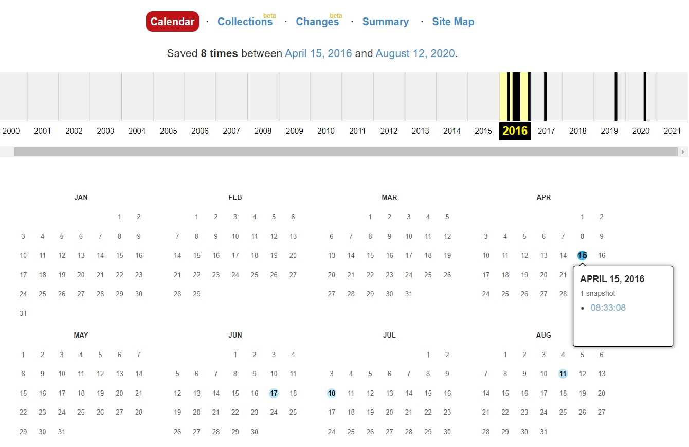 Если ввести URL страницы в поле, архив покажет даты, когда он сканировал эту страницу. Не дату публикации или обновления, а дату сканирования, так что определить день, когда статью выложили, не получится.
