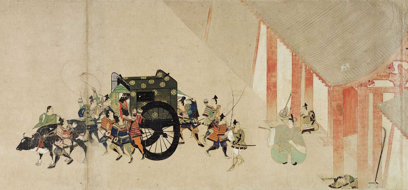 Император Нидзё сбегает из императорского дворца в особняк Рокухара. Рисунок неизвестного автора. XIII векTokyo Digital Museum