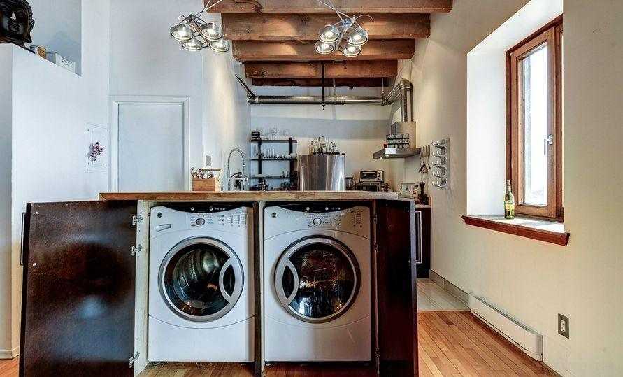Не пренебрегайте таким вариантом, как установка машинки на кухне. Это не только удобно, но и гармонично и красиво.