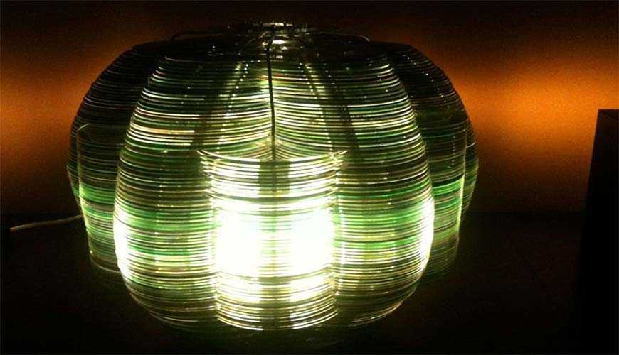 Такой осветительный прибор делается выполнить из стекла, пластика или даже дерева. Для дополнительной индивидуальности можно добавить другие элементы из бумаги, картона. Используются в изготовлении и старые компьютерные диски. Имеет смысл рассмотреть самый необычный, но в то же время простой вариант подобного изделия – люстру из пластиковых ложек.