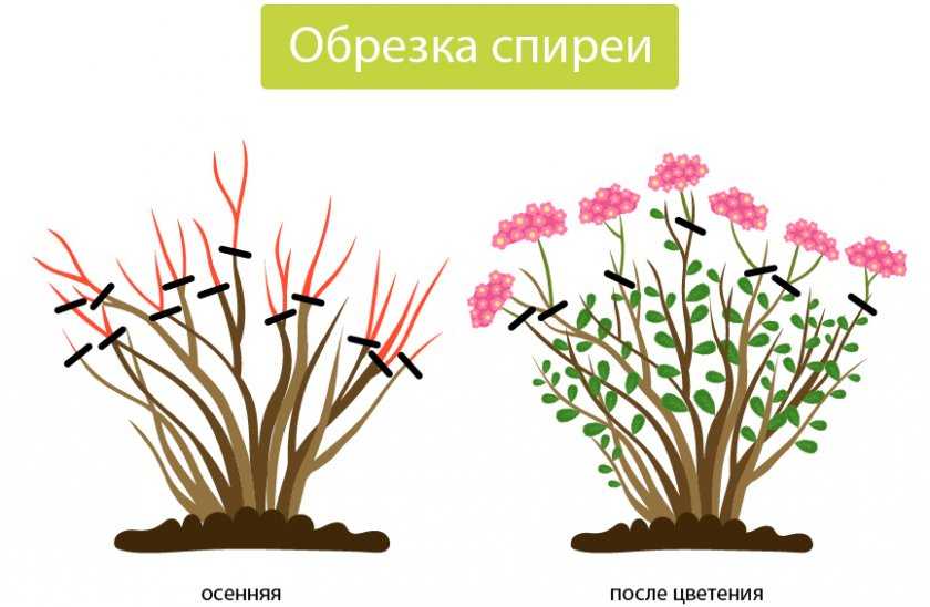 Обрезать кустарники после зацветания нужно, чтобы удалить все ветки с завядшими соцветиями у растений, распустившихся в мае либо начале июня. Это особенно нужно для кустов метельчатого типа, цветущих весной, поскольку их обрезают в декоративных целях. Почки цветов у таких спирей зарождаются по длине веток в осенний период, а за лето на них образуются взрослые побеги, на которых будущей весной распустятся бутоны. Кусты, цветущие летом, обрезают ранней весной.