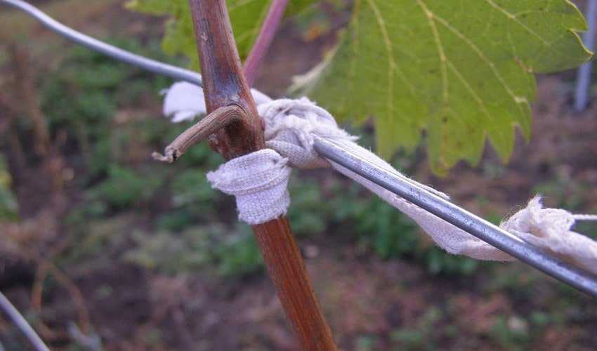 Подвязывают виноград весной, до начала сокодвижения. Это сухой вид подвязки. Еще существует зеленая подвязка: ее проводят летом, когда длина побегов превышает 30 см. Привязывают их к опоре перпендикулярно. Этого необходимо для того, чтобы защитить молодые побеги от непогоды.